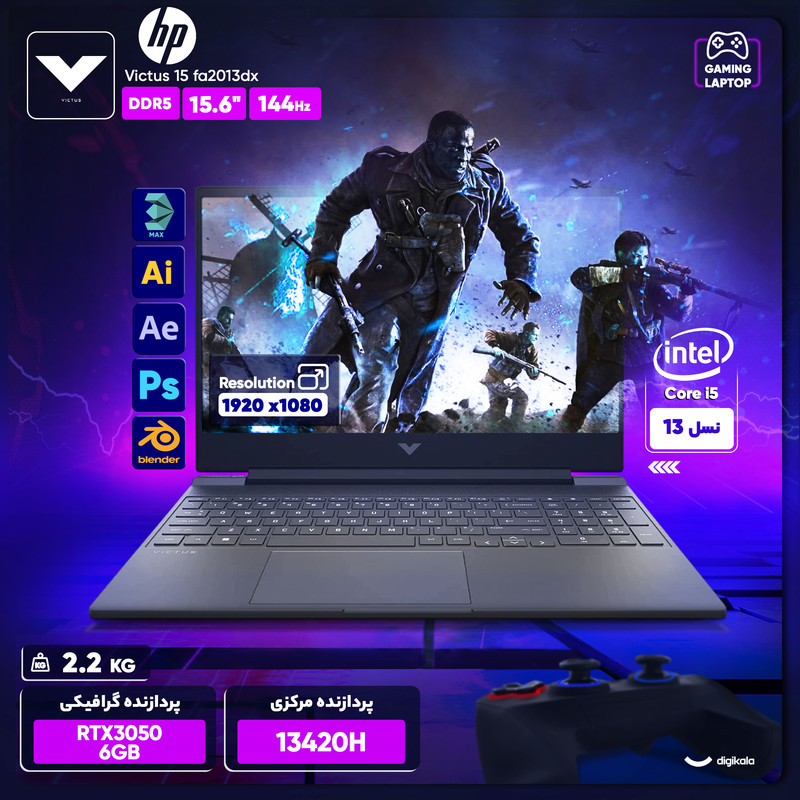 لپ تاپ 15.6 اینچی اچپی مدل Victus 15 fa2013dx-i5 13420H-8GB DDR4 3200MHz-512GB SSD-RTX3050 6GB-W