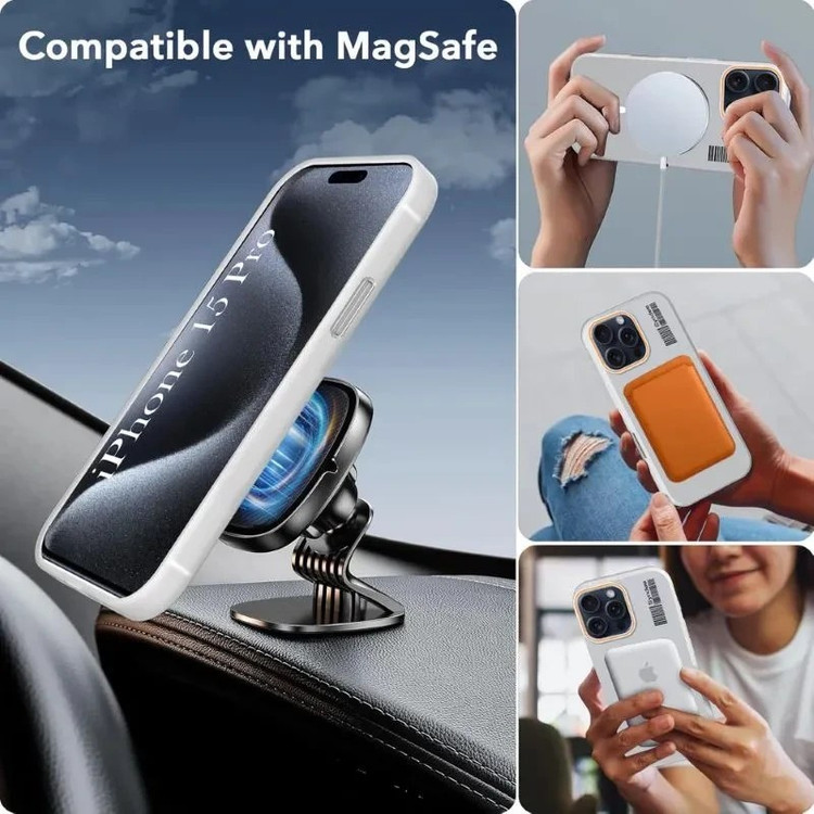- مجهز به حلقه داخلی برای اتصال به استندها و هولدرهای مغناطیسی (سبک MagSafe).