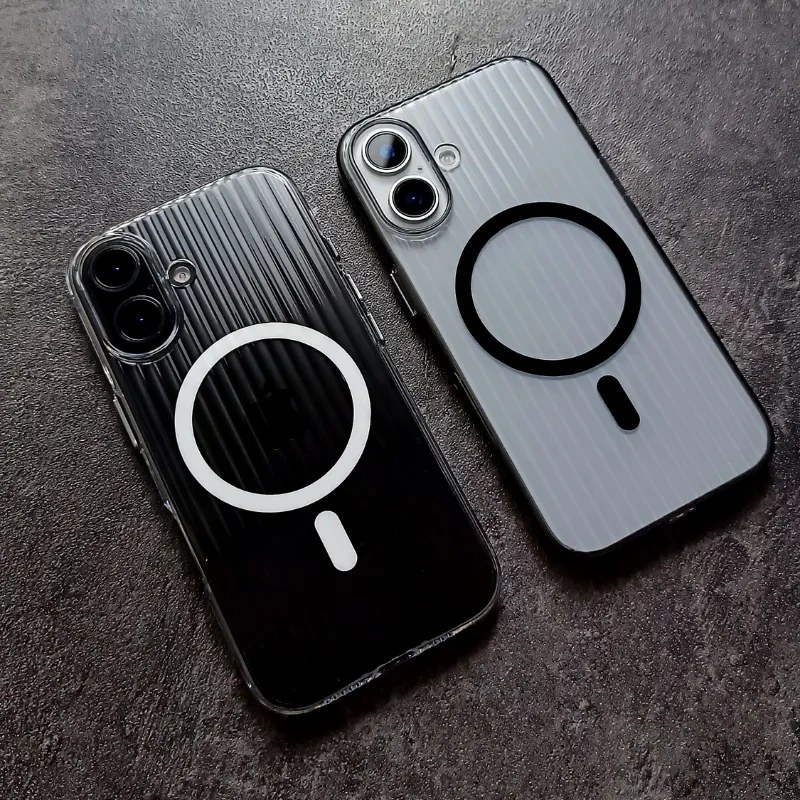 هویت قابهای شفاف حفظ اصالت طراحی گوشی است؛ بااینحال، کیفیت متریال تعیین میکند این شفافیت چقدر پایدار بماند. در قاب شفاف ضد زردی 16Pro Air MagSafe از پلیکربنات شفاف سخت استفاده شده تا خطوخشهای ریز دیرتر ظاهر شوند و کدری سطح به حداقل برسد. همچنین بافت کرکرهای ظریف پشت قاب، آثار خراشهای سطحی را کمتر نمایان میکند.